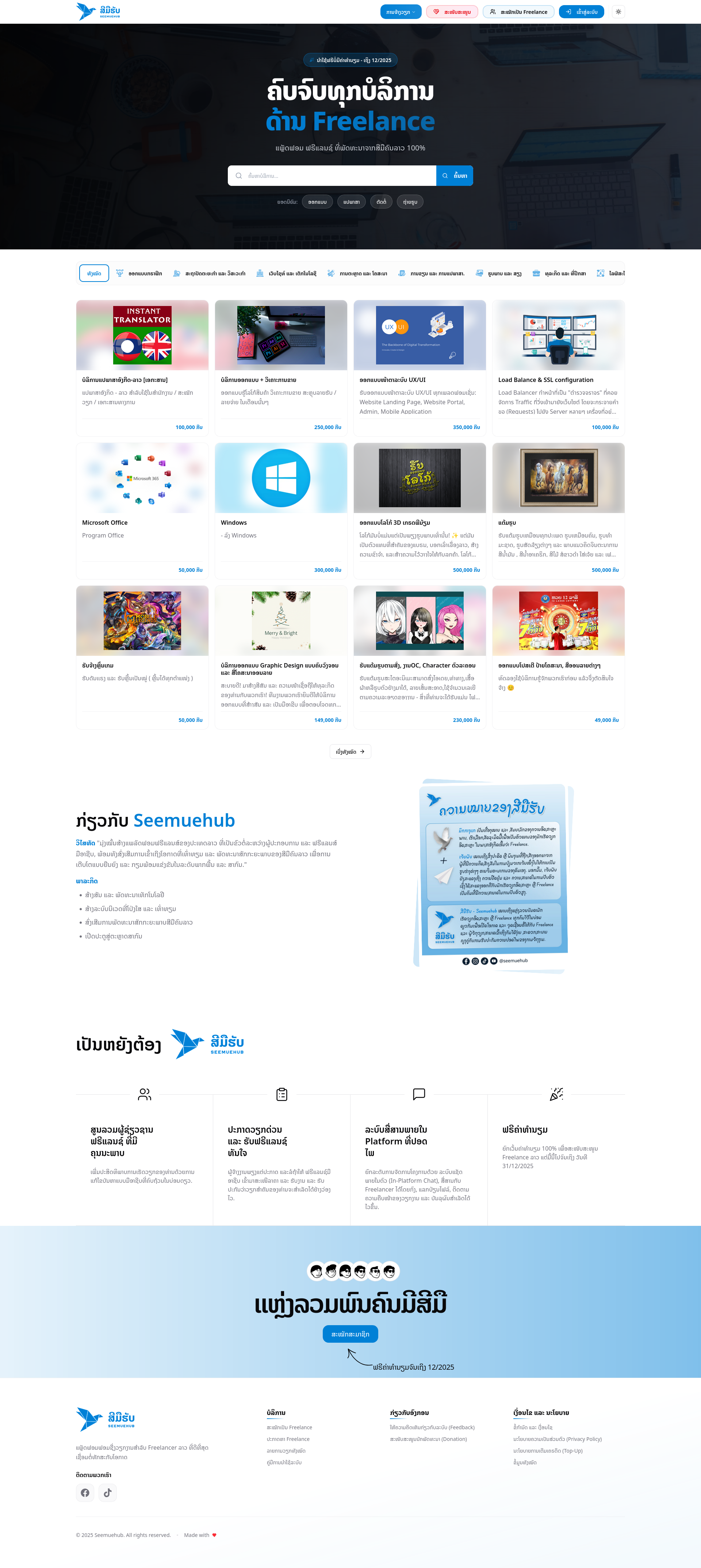 Seemuehub (ສີມືຮັບ) is a comprehensive freelance marketplace developed 100% by Lao creators to connect local professionals with entrepreneurs.